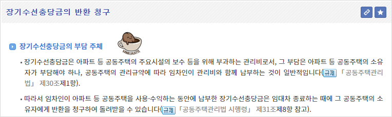 - 임대차 종료 후 이사 시 관리실에 장기수선충당금 정산 내역을 요청합니다.