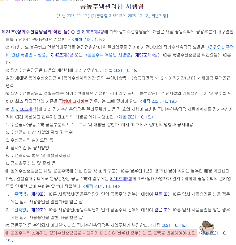 아파트를 소유하거나 임차하는 분들에게 중요한 정보인 아파트 장기수선충당금 반환에 대해 알아보겠습니다.